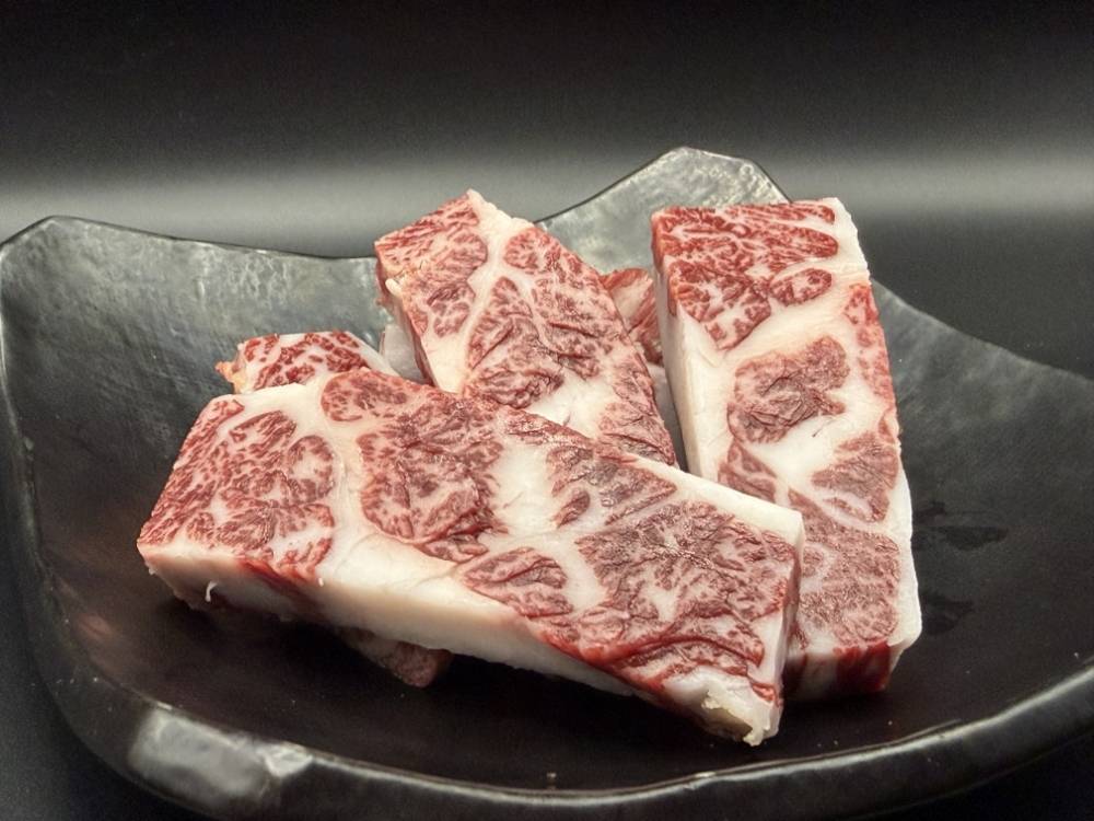 牛の「ツラミ」は、牛の頬やこめかみ部分の部位のお肉で、1頭から約1kg程度しか取れない希少な部位です。良く動く筋肉なので、肉質は硬めですが、ゼラチン質を多く含み、濃厚な旨みとムチムチとした食感が特徴です。