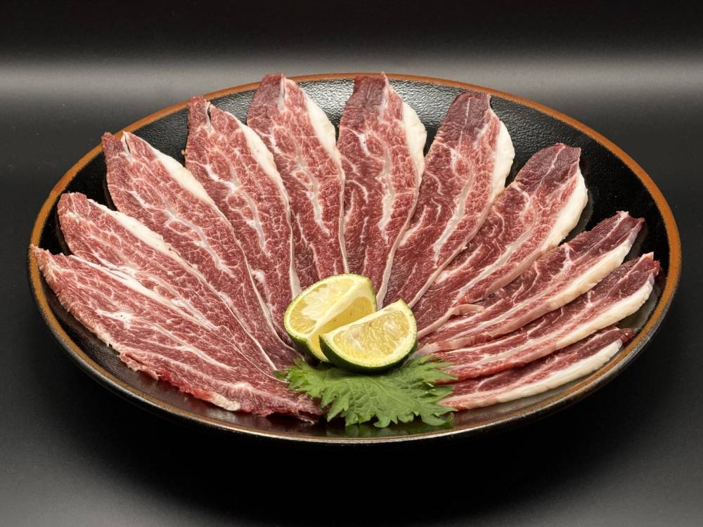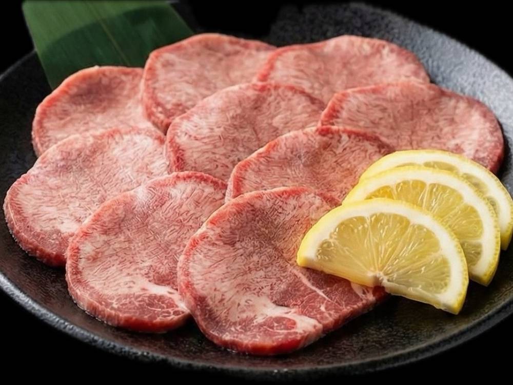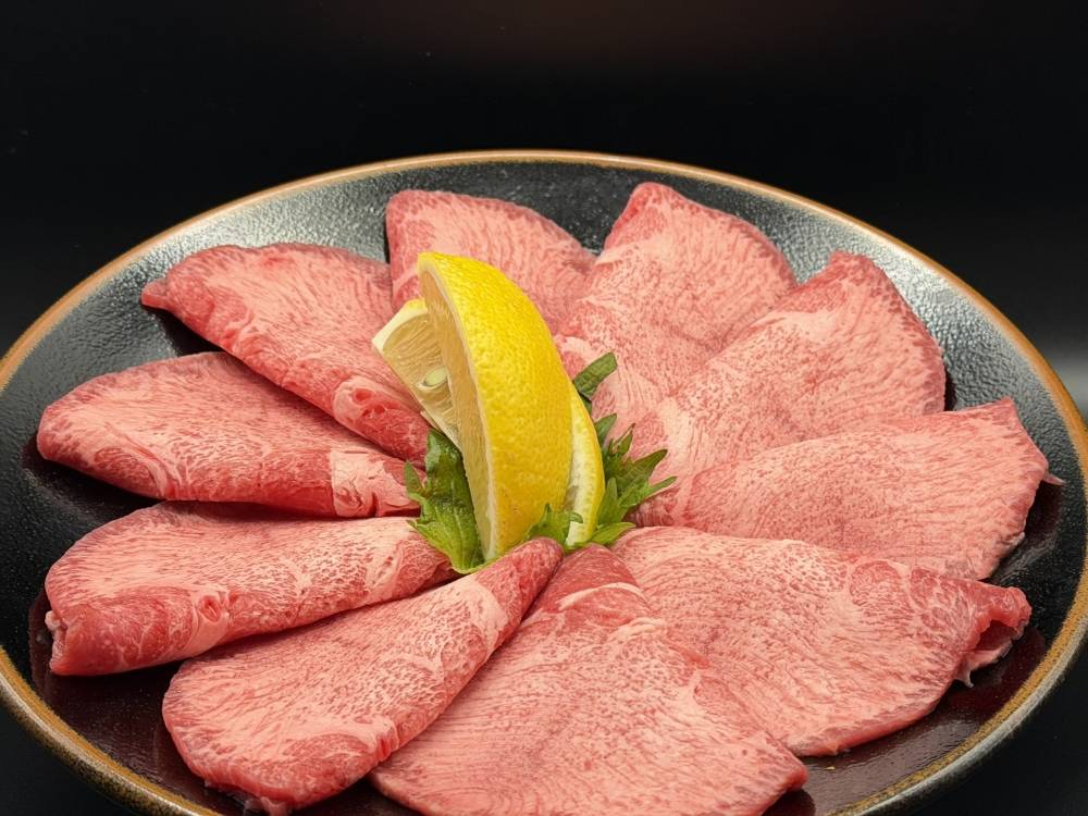 牛タンは1頭から約1〜1.5kgしか取れない希少な舌の部位です。ビタミンB2やナイアシンを多く含み、低糖質でヘルシーなためダイエット中にも人気です。適度な厚みでサクッとした食感を楽しめます。