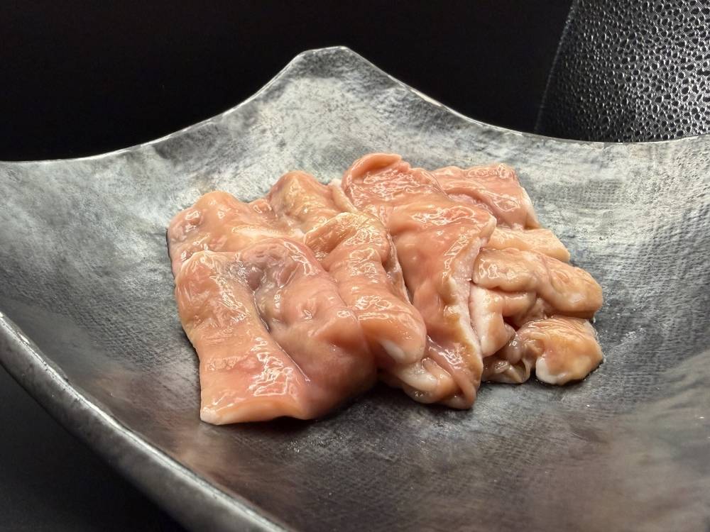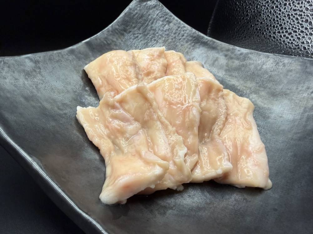 中から沸かす沸かし技術に向いた部位で、当店おススメの一品です。焼き上がりがパサつくことなく、生レバー寄りの味を堪能していただけます。レバーの臭いが苦手という方にもおススメです。
